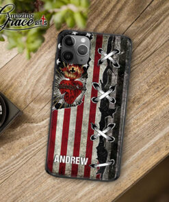 American Flag Jesus Christ Sacred Heart – Glass Phone Case