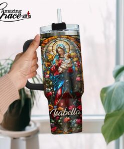 Grained Glass Virgin Mary Jesus Christ’s Mother – Stainless Steel Tumbler 40oz