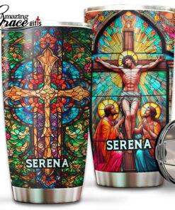 Grained Glass Jesus Christ Cross – Stainless Steel Tumbler 20oz