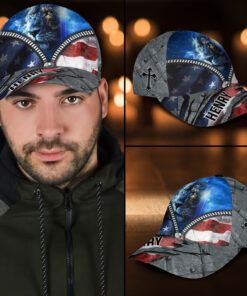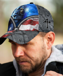 America Flag Cross Lion Patriotic Christian Faith – Classic Cap