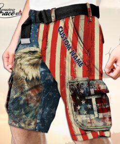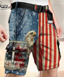 American Flag Eagle Cross Patriotic Christian – Cargo Shorts (Belt Not Included) – AGG2733