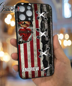 American Flag Jesus Christ Sacred Heart – Glass Phone Case