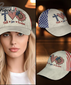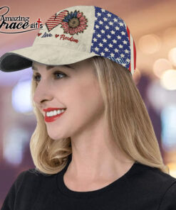American Flag Sunflower Faith Love Freedom Patriotic Christian – Classic Cap