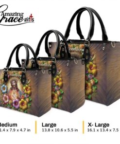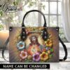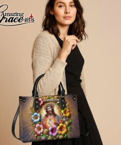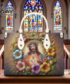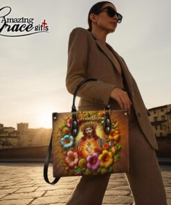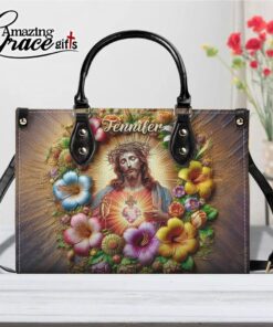 Colorful Flowers Jesus Sacred Heart Christian – Leather Handbag L