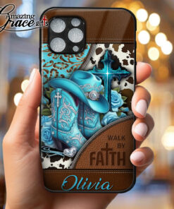 Cowgirl Boots Walk By Faith – Glass Phone Case