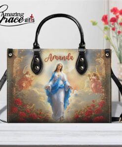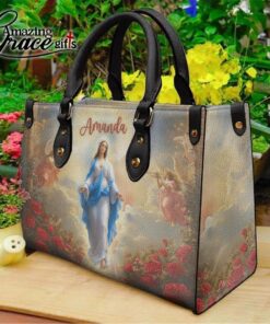 Flower Glow Virgin Mary’s Grace Christ Mother | Personalized Leather Handbag