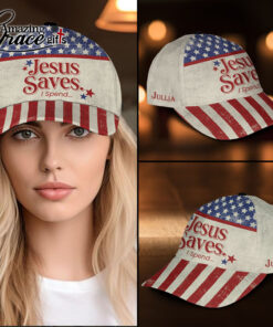 Funny American Flag Jesus Saves I Spend – Classic Cap