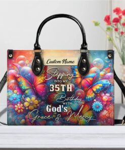 Embrace your faith daily with our Personalized Leather Handbag, adorned with beautiful floral accents and a butterfly motif. This custom handbag allows you to express your beliefs while adding an elegant touch to any outfit. It’s the perfect gift for yourself or someone special, offering a meaningful way to carry your spiritual journey.​​