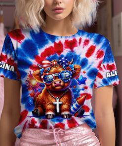 Highland Cow Jesus Patriotic Christian – T-Shirt