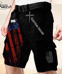 Jesus Cross American Flag Patriotic Christian – Cargo Shorts (Belt Not Included) – AGG2696