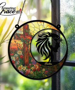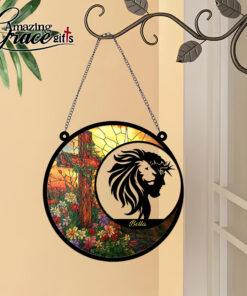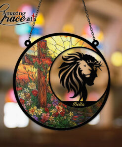 Lion Jesus Christ Flower Cross – Suncatcher