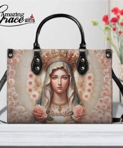 Rose Flower Virgin Mary Grace Jesus Christ’s Mother – Leather Handbag L