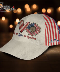 American Flag Sunflower Faith Love Freedom Patriotic Christian – Classic Cap